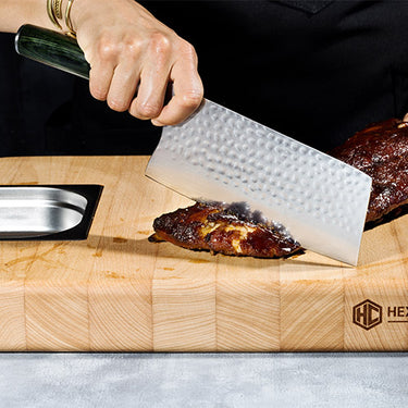 Thinner and lighter than a cleaver, its double-beveled edge and hard blade make quick work of delicate fruits and vegetables.