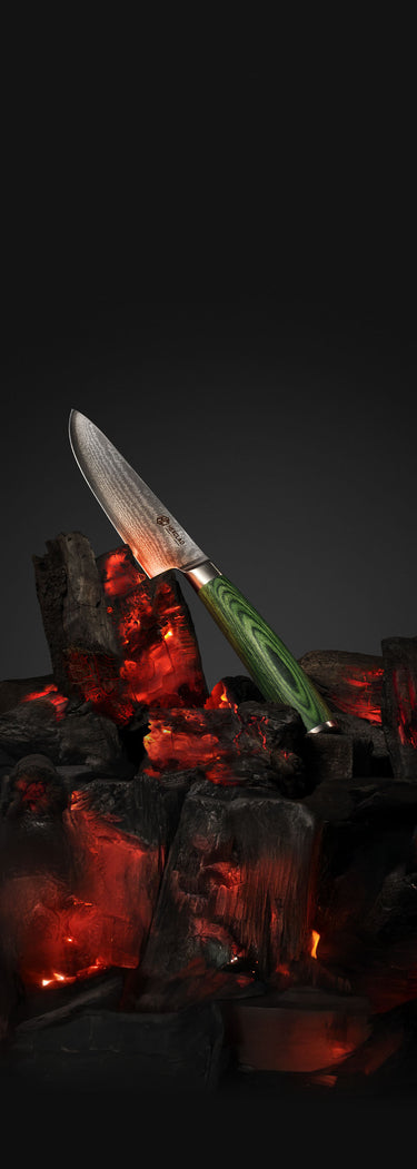 The Rockwell Scale measures knife hardness. A score of 58-60 is considered optimal; ours hits 60 thanks to an advanced heat treatment–a process of tempering and quenching the steel–that enhances its hardness.